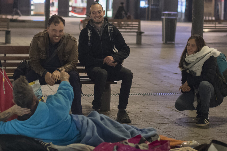 C’est une des particularités des tournées de rue : elles permettent à des étudiants ainsi qu’à de jeunes et moins jeunes actifs comme Catherine et Nicolas – la cinquantaine passée et respectivement magnétiseuse et expert-comptable – de s’investir dans une action bénévole, en soirée. Une autre équipe se retrouve le dimanche soir.