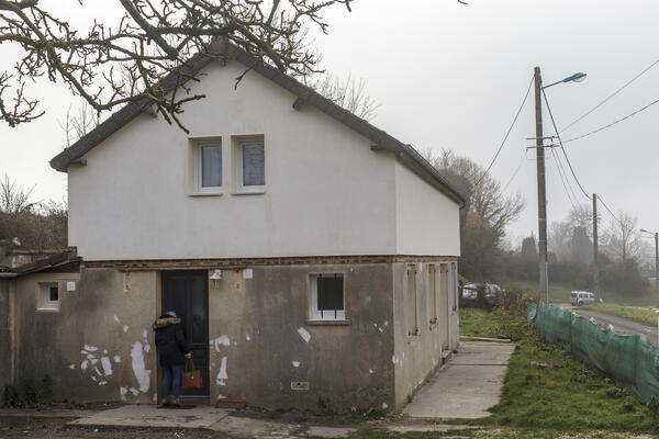 « C'est sûr que ça va être un gros chantier », confie Carole Duforestel. En cette matinée pluvieuse du 23 octobre, cette ancienne nourrice, aujourd'hui employée à temps partiel par l'école du secteur pour s'occuper des enfants pendant la cantine et du ménage, observe sa maison depuis l'extérieur. Elle y vit seule avec son dernier fils, Damien, âgé de 12 ans. Ces prochains jours, une équipe d'artisans va investir les lieux pour rénover la bâtisse.